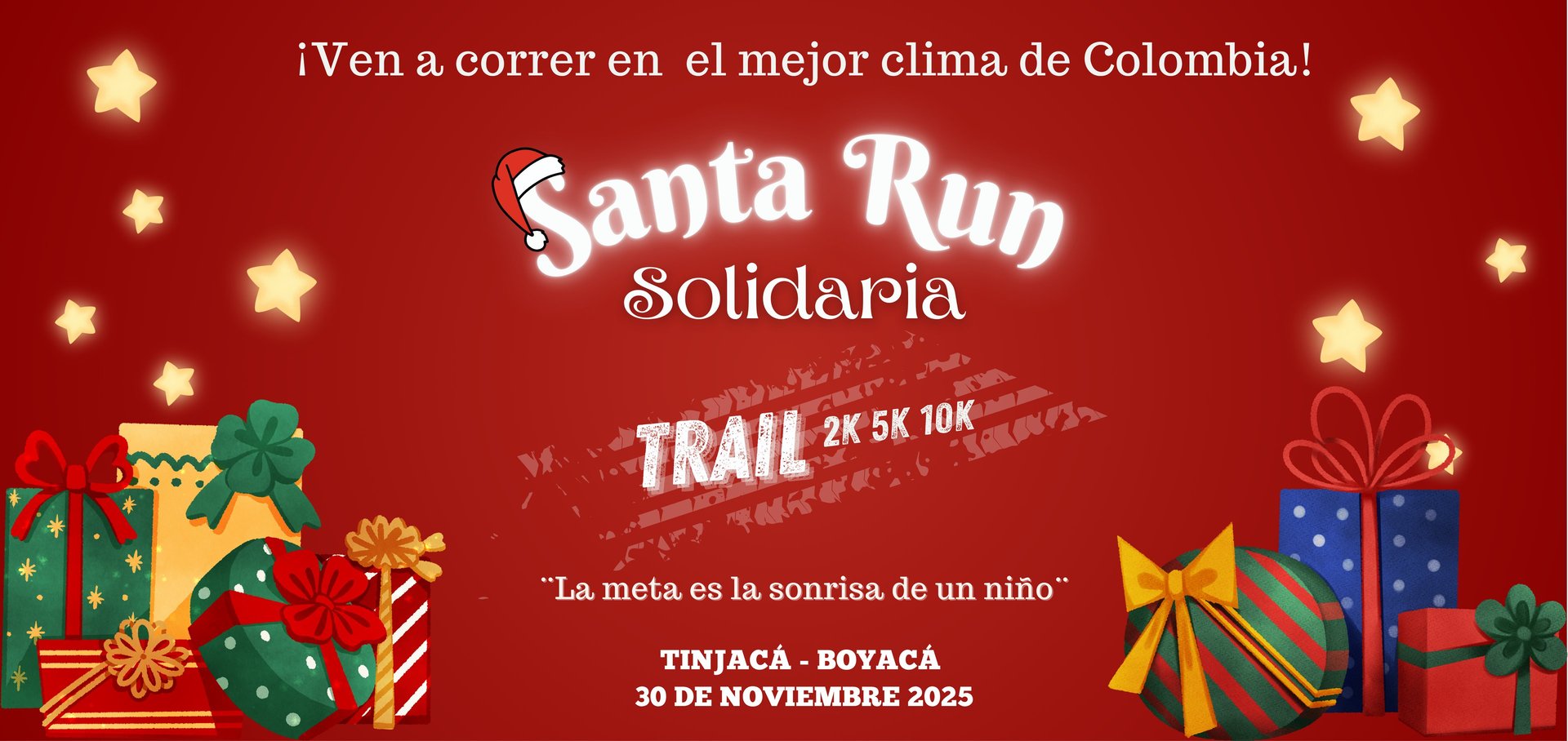Santa Run Solidaria no es solo una carrera… es un movimiento de amor, unión y esperanza. Cada paso que das se transforma en una sonrisa: los fondos recaudados se destinan a llevar regalos y una experiencia educativa con un planetario móvil a los niños y niñas del Alto Ricaurte, Boyacá. Queremos que vivan una Navidad mágica, donde la ciencia, la alegría y la solidaridad se encuentren en un mismo lugar.